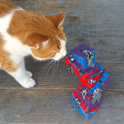 3 Floracraft Foam Cubes of 3" each, Sharpie, Ruler, Craft Knife, Paint, and Silver Glossy Rinea Foiled Paper