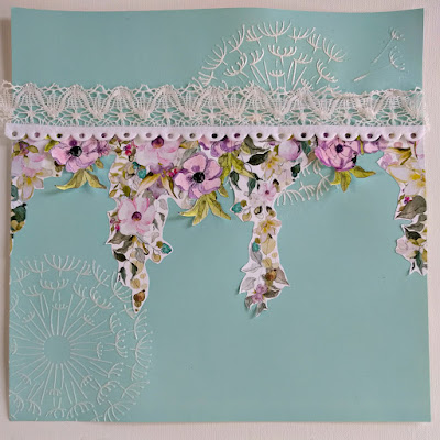 Step 1: Cut papers. Adhere Roses to Ivory paper.